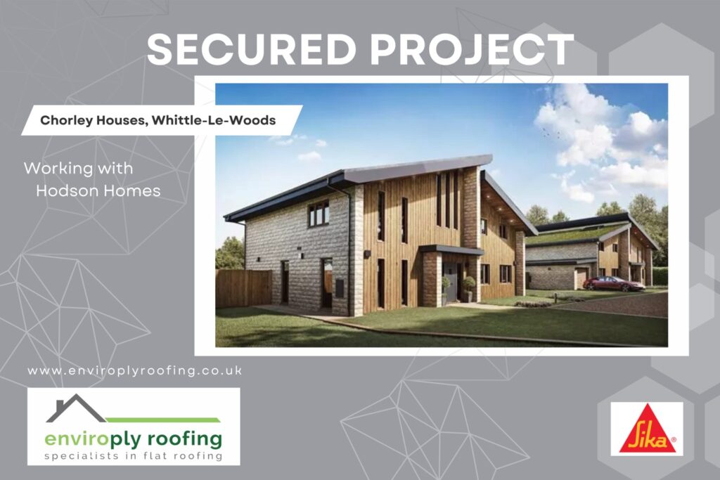 We are pleased to announce that here at Enviroply Roofing, we will be working with Hodson Homes on the development at Whittle-Le-Woods, Chorley. For this, we will be installing a number of Sikaplan single ply roofing systems.